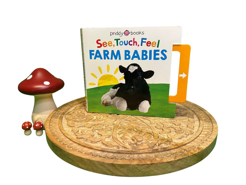 This sturdy board book is packed with classic See, Touch, Feel artwork and filled with charming farm babies to spot and name. Each page includes pull-tabs with a clever built-in sound mechanism, allowing children to play as they learn. They can answer simple questions, slide the tabs, and reveal the answers with a satisfying noise every time.