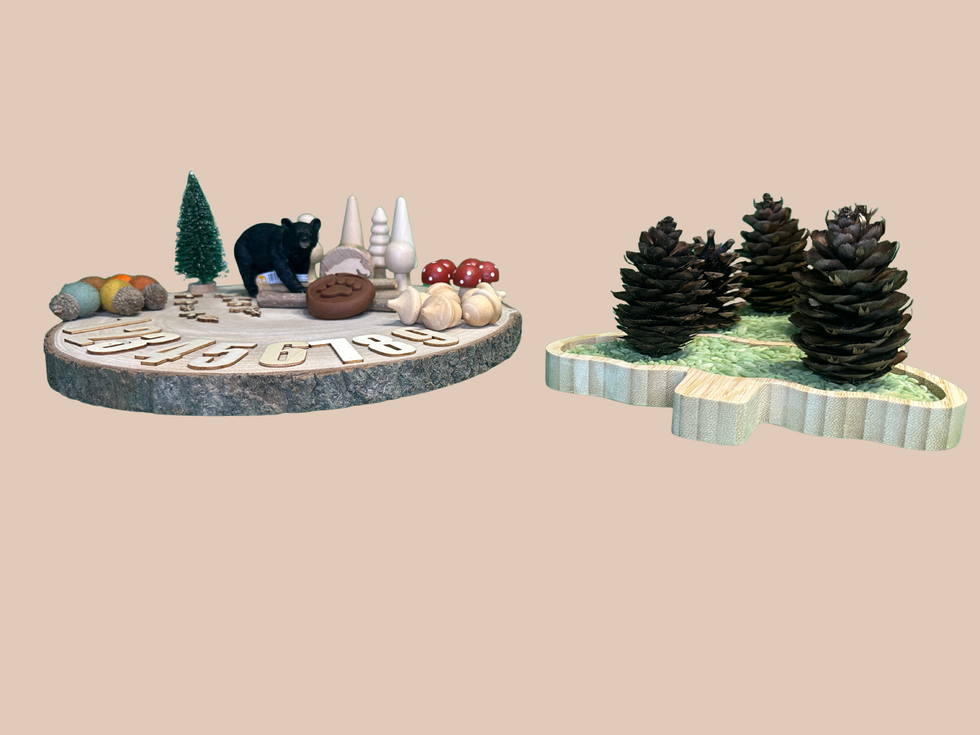 🐻 Sensory Exploration – Engage the senses with 5 felt acorns, real pinecones, and wooden shapes like mushrooms, trees, and squirrels to spark curiosity and tactile play.